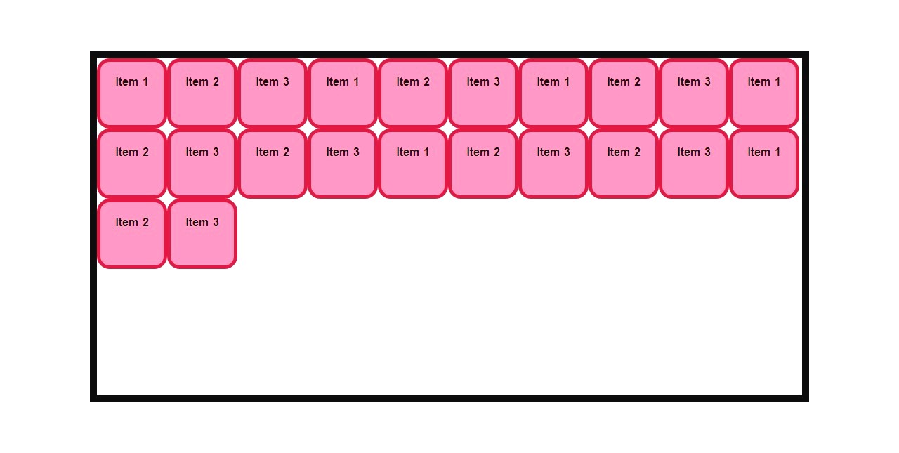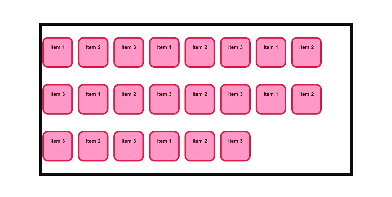 - Item Styling: Equal dimensions, rounded corners, and center-aligned text.